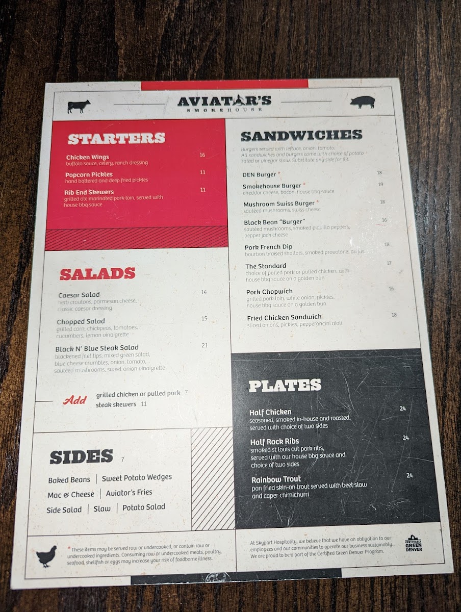 Welcome to Aviator's, a must-visit dining destination nestled in Denver’s airport. This culinary gem specializes in hearty, flavor-packed offerings that elevate airport dining. The menu features tantalizing starters like Chicken Wings and Spicy Deviled Eggs, paving the way for a delightful experience.